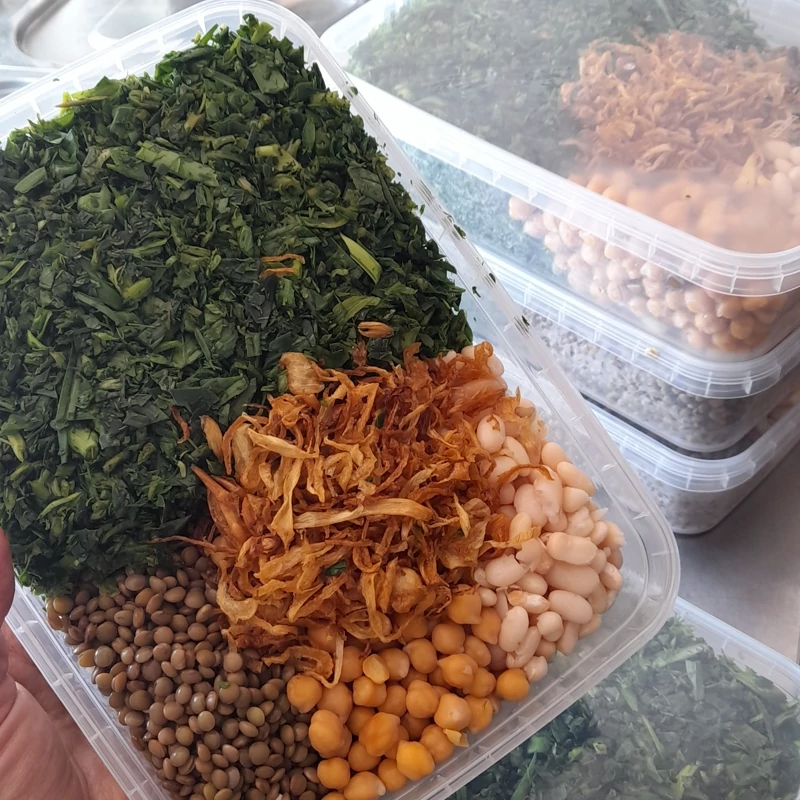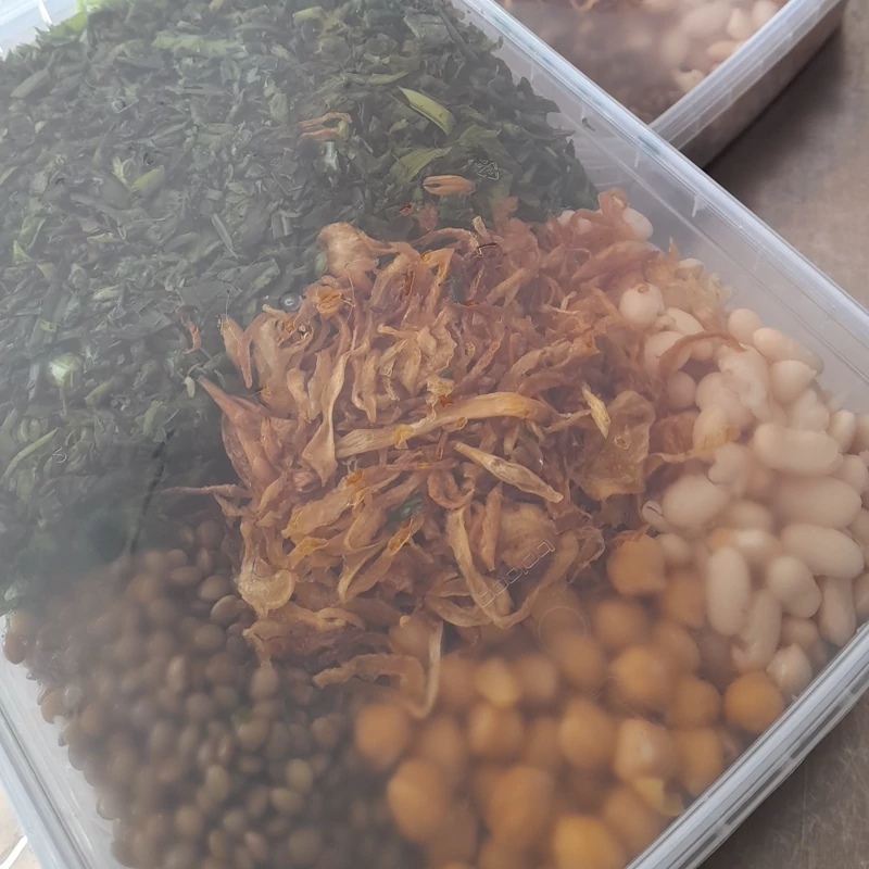 حبوبات ، روز قبل خیسانده می شوند و ۳ بار آب آن عوض می شود تا نفخ کامل گرفته شود، بعد از پخت کامل ، به همراه سبزی تازه و پیاز سرخ شده در یک پک بسته بندی می شوند.
